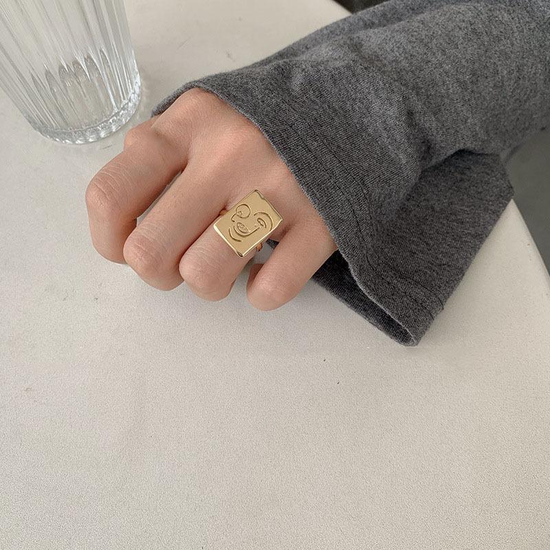 Кольцо Anenjery Golden Geometric Impression Face Ring для женщин, персонализированное ретро-мода, простой подарок на день рождения adjustable золотой