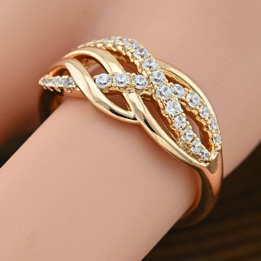 Кольцо Xuping 14824 ширина 9 мм белые фианиты позолота 18К размер 19