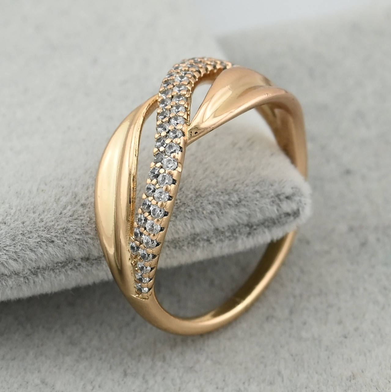 Кольцо Xuping 30542 ширина 8 мм белые фианиты позолота 18К размер 19