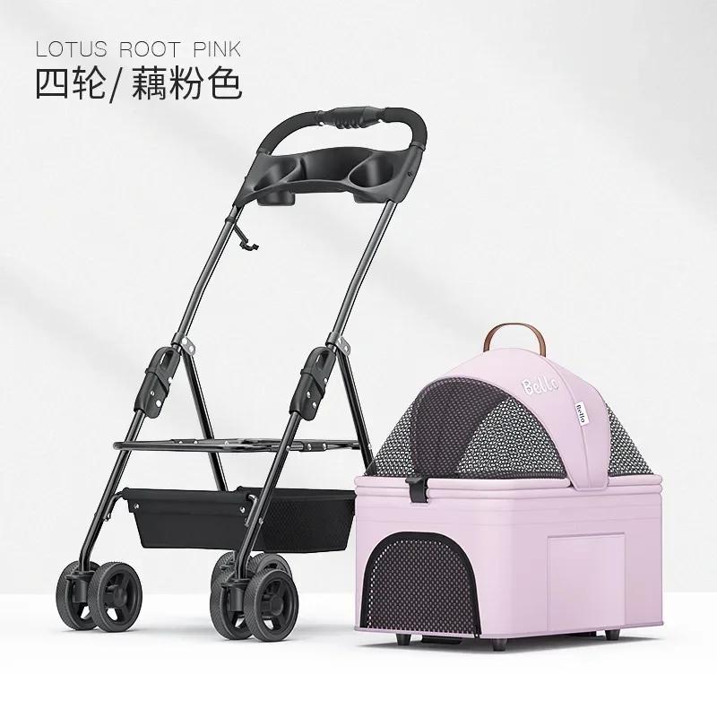 Коляска для домашних животных, съемная и легко складывающаяся, дышащая, алюминиевая, для путешествий, для кошек, собак, младенцев, с корзиной для хранения, для уличного использования, для перевозки кошек и собак розовый