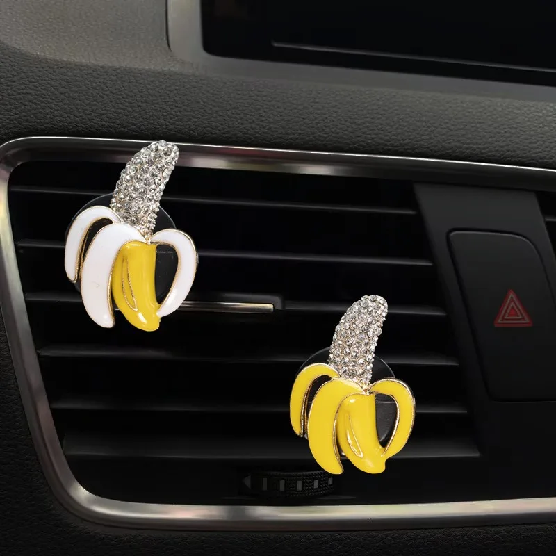 2PCS Fruit Banana Car Air Outlet Perfume Holder Refillable Cartridge Clip-on Car Air Vent Freshener Vent-mounted Fragrance