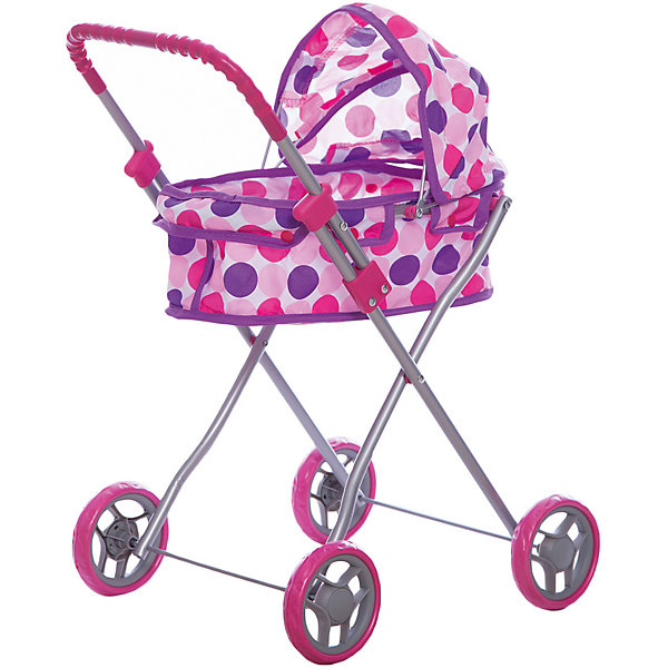 Каркас коляски выполнен из облегченного металла. Большие пластиковые колеса обеспечат устойчивость и превосходную проходимость. Перекидной складной козырек защитит куклу от солнца и непогоды. Люльку при желании можно снять. Ручка коляски имеет эргономичную форму. Коляска легко складывается, удобна для хранения и транспортировки.