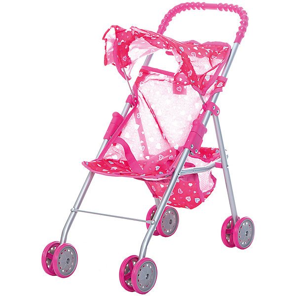 Коляска для кукол с козырьком в рюшах Buggy Boom, розовая, Розовый