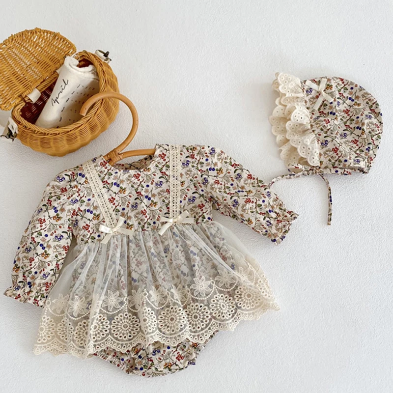 Комбинезоны для маленьких девочек + кружевной комбинезон с принтом в виде шапки, хлопковый комбинезон для маленьких девочек с длинным рукавом, одежда для маленьких девочек на весну и осень