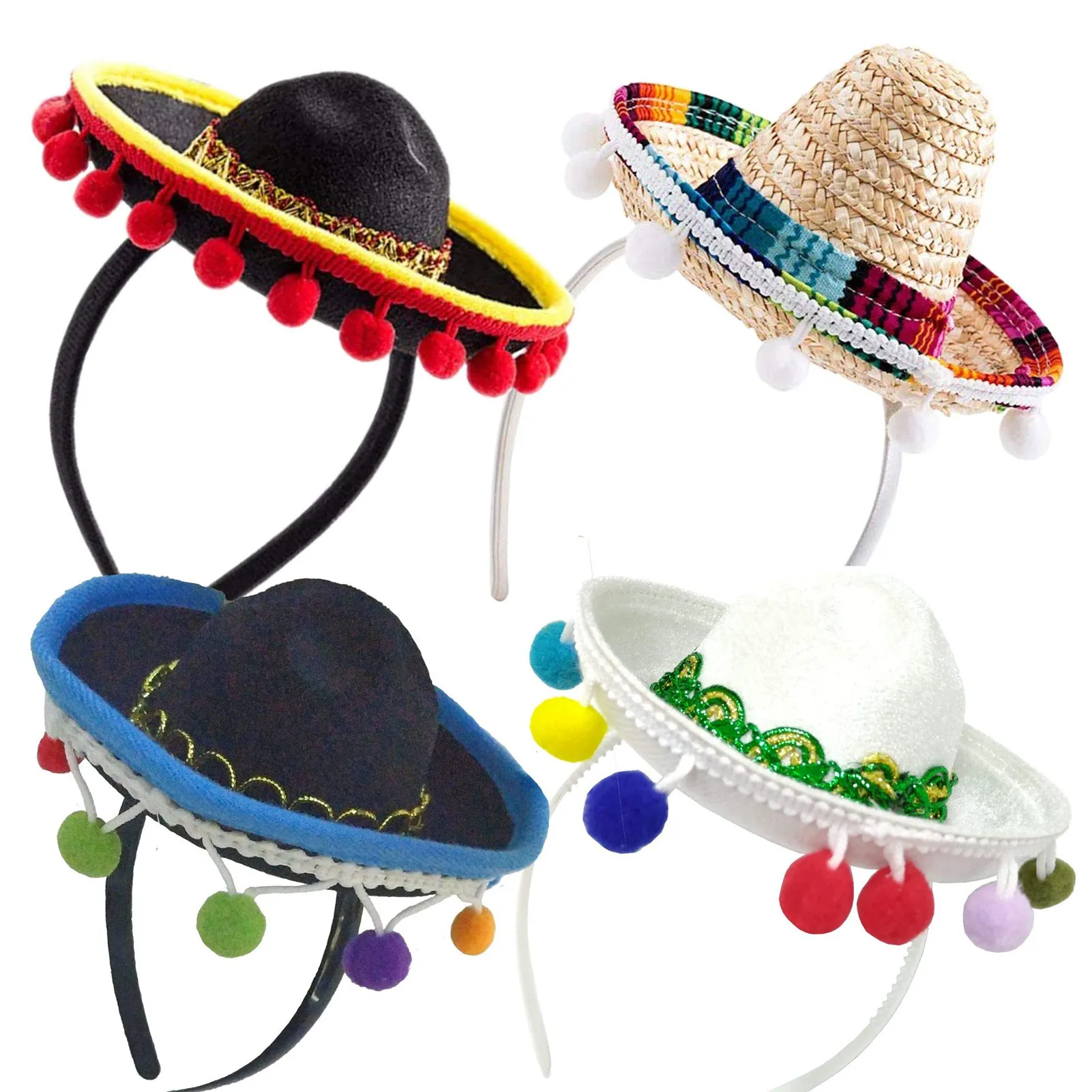 Set Of 4 Sombrero Headband Set Of 4 Mini Sombrero Headband Mexican Themed Party Decorations Mexicana Final Fiesta Carnival Party