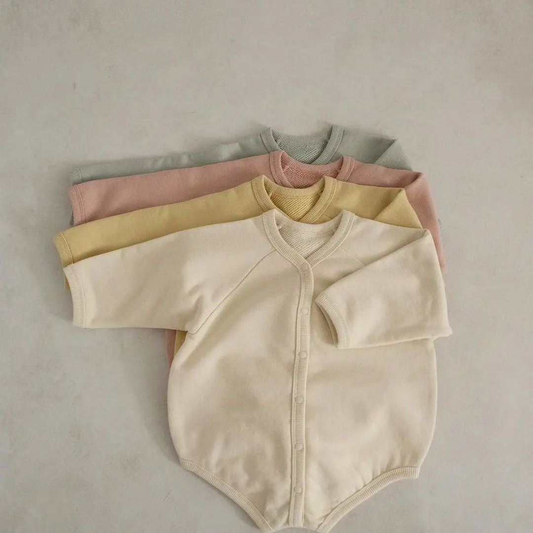 Комбинезон для новорожденных девочек и мальчиков, однотонный, с длинным рукавом