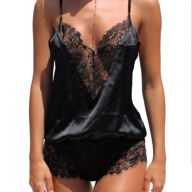 Комбинезон женский кружевной, пикантная одежда для сна с V-образным вырезом, пижама на бретелях-спагетти, сексуальный топ для сна