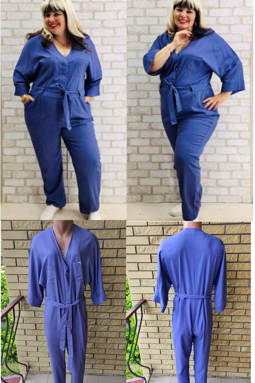 Комбинезон летний джинсовый стрейчевый больших размеров EXCLUSIVE, состав 95% коттон, 5% эластан.