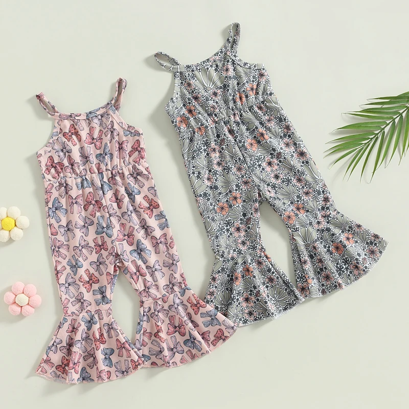 Комбинезон на бретелях-спагетти без рукавов с цветочным принтом и бантом