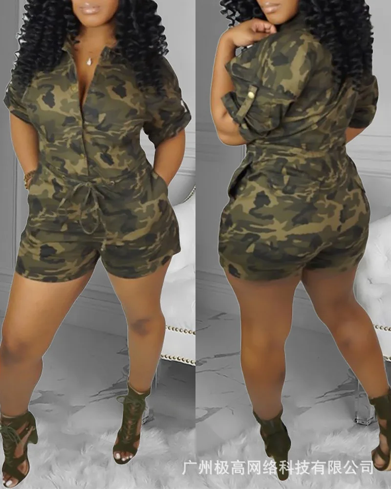 Комбинезон с коротким рукавом и завышенной талией, с камуфляжным принтом