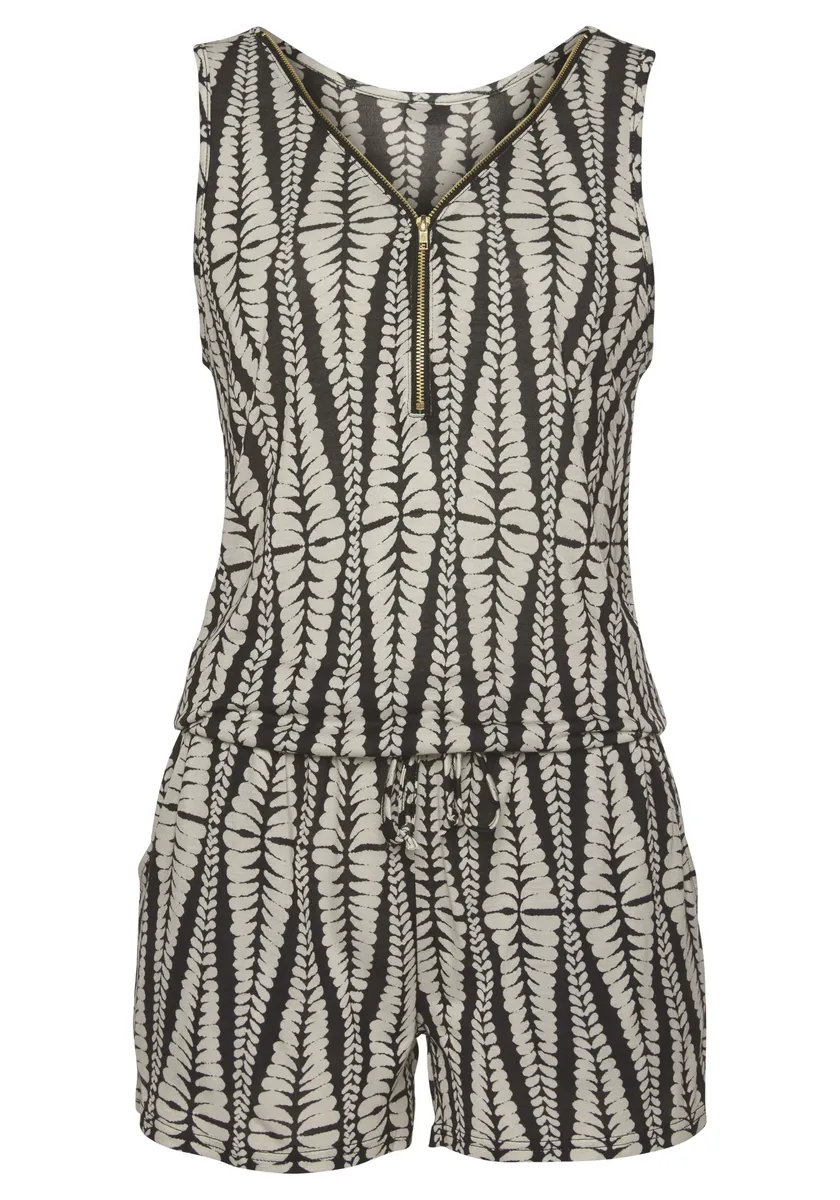 Комбинезон LASCANA, с молнией по горловине, комбинезон с принтом по всей поверхности, цвет Schwarz-Sand-Bedruckt
