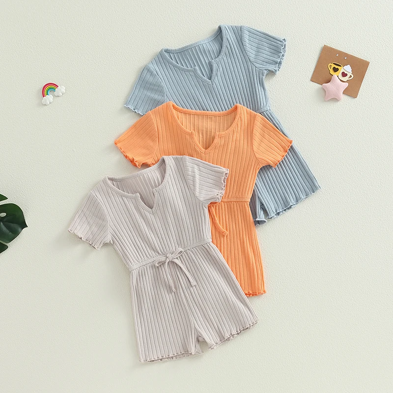 Комбинезон Lioraitiin в рубчик для девочек 0-4 лет, однотонный комбинезон с коротким рукавом, летняя одежда, 2023-05-05