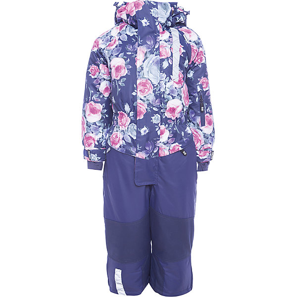 Комфортный и теплый комбинезон для девочки из мембранной ткани. В конструкции учтены физиологические особенности малыша. Съемный капюшон на кнопках с дополнительной утяжкой, спереди установлены две кнопки. Рукава с манжетами, регулируются липучкой. Два кармана, застегивающиеся на молнию. Застежка-молния с внешней ветрозащитной планкой.