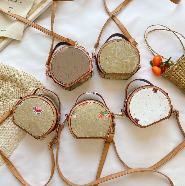 fashion girls shell handbag children cartoon printed messenger bags kids strawberry circular single shoulder bag a4843, Black