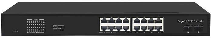 Коммутатор неуправляемый GIGALINK GL-SW-G005-16P 16PoE (802.3af/at)-1000Мбит/с, 9-16 порт до 250м cat6, 2 SFP- 1000Мбит/с , 300W, GL-SW-G005-16P