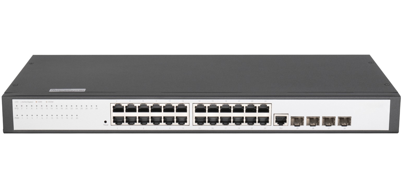 Коммутатор управляемый GIGALINK GL-SW-G201-28 L2, 24 Base-T 10/100/1000Mb/s портов, 4 SFP 1000Mb/s, 1 Console. 1U 19'', 220V, GL-SW-G201-28