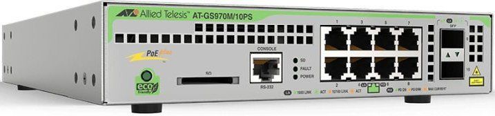 Коммутатор Allied Telesis AT-GS970M/10PS-R-50, управляемый, кол-во портов: 8x1 Гбит/с, кол-во SFP/uplink: SFP 2x1 Гбит/с, установка в стойку, PoE: 8x30 Вт (макс. 124 Вт) (AT-GS970M/10PS-R-50), AT-GS970M/10PS-R-50