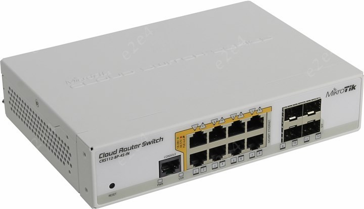 Коммутатор MikroTik Cloud Router Switch 112-8P-4S-IN, управляемый, кол-во портов: 8x1 Гбит/с, SFP 4x1 Гбит/с, установка в стойку, PoE: 8x30Вт (макс. 150Вт) (CRS112-8P-4S-IN), Cloud Router Switch 112-8P-4S-IN