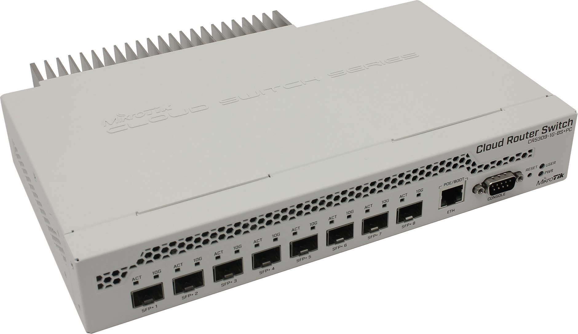 Коммутатор MikroTik Cloud Router Switch 309-1G-8S+IN, управляемый, кол-во портов: 1x1 Гбит/с, SFP+ 8x10 Гбит/с, установка в стойку (CRS309-1G-8S+IN), Cloud Router Switch 309-1G-8S+IN