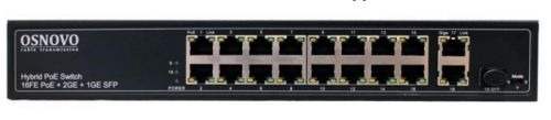 Коммутатор OSNOVO SW-61621(300W), кол-во портов: 16x100 Мбит/с, SFP 1x1 Гбит/с, кол-во SFP/uplink: RJ-45 2x1 Гбит/с, установка в стойку, PoE: 16x30Вт (макс. 292Вт) (SW-61621(300W)), SW-61621(300W)
