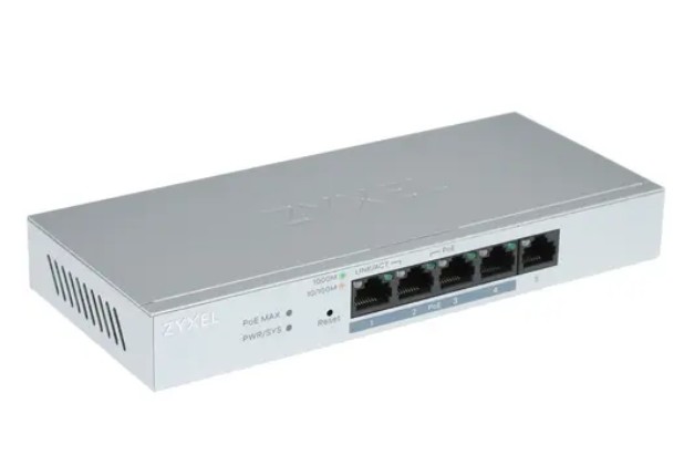 Коммутатор ZYXEL GS1200-5HPV2-EU0101F Smart L2 PoE+, 5xGE (4xPoE+), настольный, бесшумный, с поддержкой VLAN, IGMP, QoS и Link Aggregation, бюджет PoE, GS1200-5HPV2-EU0101F