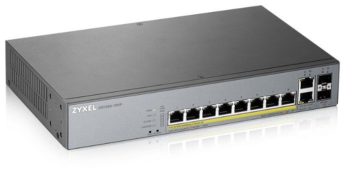 Коммутатор ZYXEL GS1350-12HP, управляемый, кол-во портов: 10x1 Гбит/с, кол-во SFP/uplink: SFP 2, установка в стойку, PoE: 8x30Вт (макс. 130Вт) (GS1350-12HP-EU0101F), GS1350-12HP