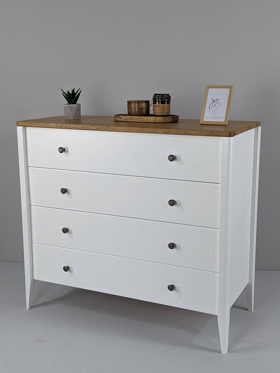 Комод выполнен из массива натурального дерева в уникальном скандинавском стиле. Вы можете выбрать цвет комода “Хюгге” на свой вкус. В нашем каталоге есть 30 цветов тонировки (видна текстура дерева) и более 200 цветов RAL (текстура дерева окрашивается).