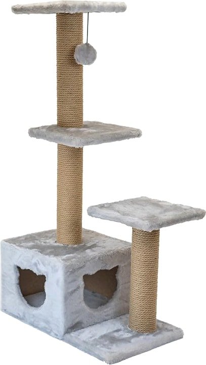 комплекс, для кошек, напольное размещение, дерево/джут/мех, бежевый/серый