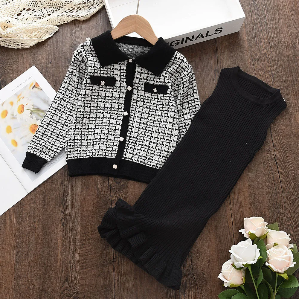 Комплекты одежды в клетку для маленьких девочек 2-6 лет, зимнее Детское пальто, свитер и платье, наряды из 2 предметов, вечерние платья для дев...