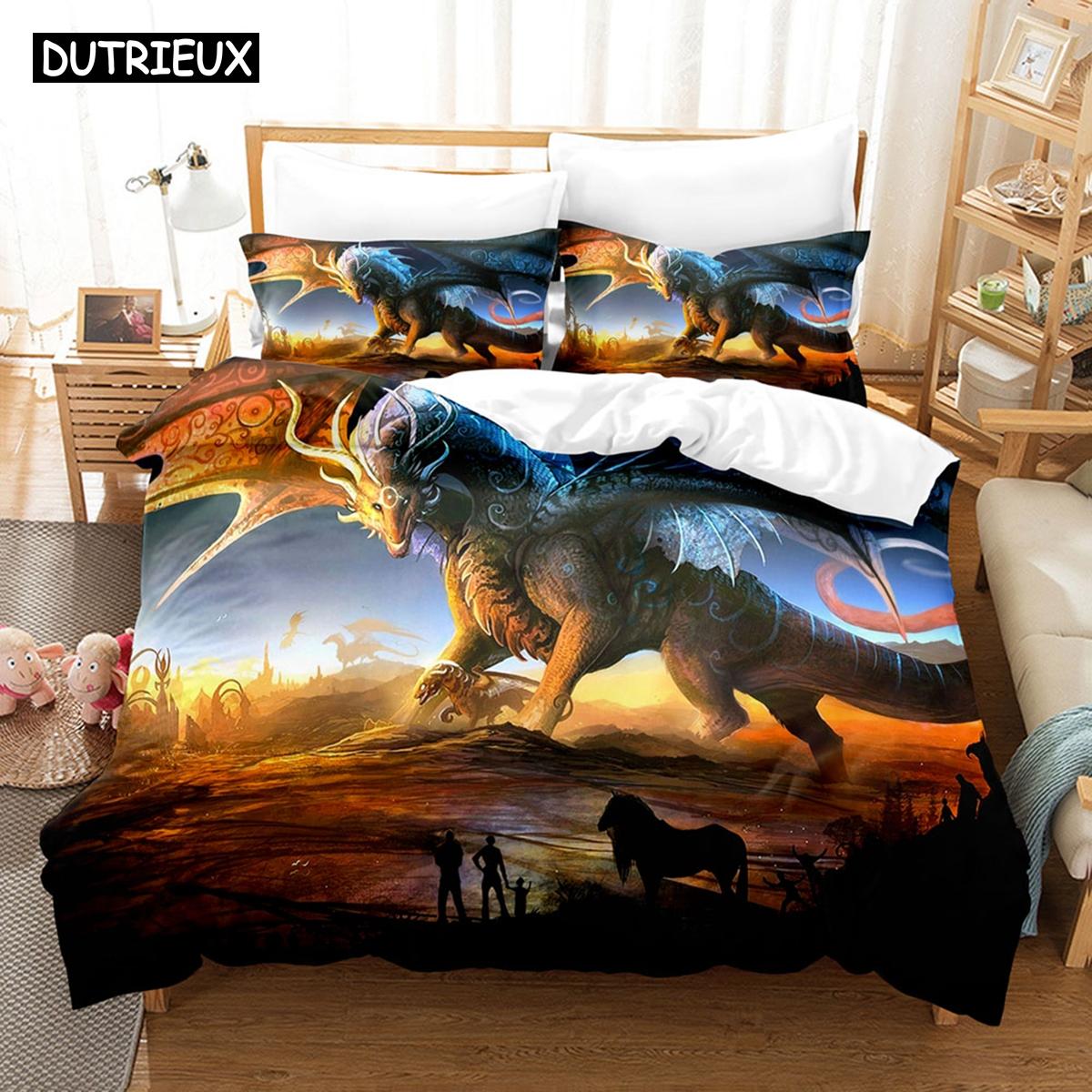 Комплекты постельного белья с 3D-драконом, пододеяльник с наволочкой, двуспальная кровать, двуспальная кровать, постельное белье EU single(135x200cm)
