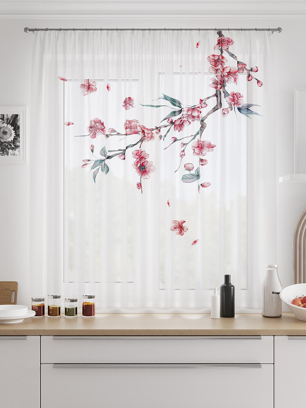 Тюль 1 шт. Ширина одного тюля без сборки 150 см, высота 180 см. Легкий, мягкий тюль из вуали с печатным рисунком. Вуаль с матовой полупрозрачной текстурой. Отличается особым шиком, идеально подходит для создания воздушных штор. Придает ощущение свежести, хорошо пропускает воздух. Ткань неприхотлива в уходе, хорошо стирается без разрушения волокон с течением времени за счет высокого кручения нитей. По верхнему краю тюля пришита шторная тесьма 6 см, с ее помощью затянув узелки от кордовых нитей с обеих сторон и стянув их до нужного размера можно сформировать округлые складки, далее вставить крючки в кармашки и повесить на карниз. Обязательно проверьте кордовые нити – они должны быть надежно завязаны, в противном случае во время стягивания они могут вылететь. Шторная тесьма имеет два ряда кармашков, с их помощью можно регулировать не только длину, но и ширину. Такое крепление подходит для всех типов карнизов.