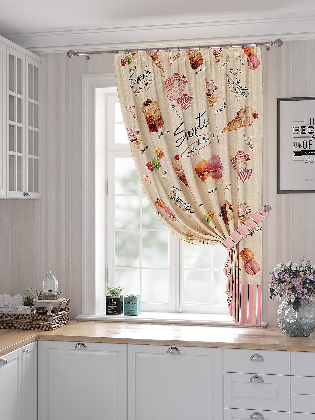 Портьеры 1 шт. Ширина полотна без сборки 150 см, высота 180 см., Портьера из легкой ткани (габардин) оформлен печатным рисунком. Печатный рисунок дает широкие возможности обновить интерьер фактически нет требуя ремонта за счет огромного выбора. Ткани с печатным рисунком безопасны и не содержат токсичных веществ. Не смотря на то что, материал легкий, он имеет высокую плотность, мало загрязнятся и не требует особого ухода даже после стирки, что важно для кухонных занавесок. Шторы не выцветают, не растягиваются, превосходно драпируются, образуя струящиеся складки. Прекрасное решение для создания красоты и уюта с помощью уникальных дизайнов. По верхнему краю портьеры пришита шторная тесьма 6 см, с ее помощью затянув узелки от кордовых нитей с обеих сторон и стянув их до нужного размера можно сформировать округлые складки, далее вставить крючки в кармашки и повесить на карниз. Обязательно проверьте кордовые нити – они должны быть надежно завязаны, в противном случае во время стягивания они могут вылететь. Шторная тесьма имеет два ряда кармашков, с их помощью можно регулировать не только длину, но и ширину. Такое крепление подходит для всех типов карнизов.