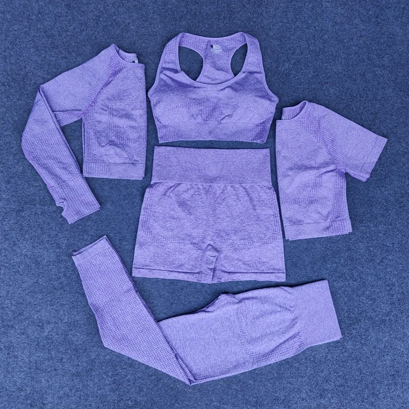 Комплект Для Йоги Женский бесшовный, спортивная одежда, укороченная рубашка с рукавами для фитнеса, топ с бюстгальтером, леггинсы с завышен...