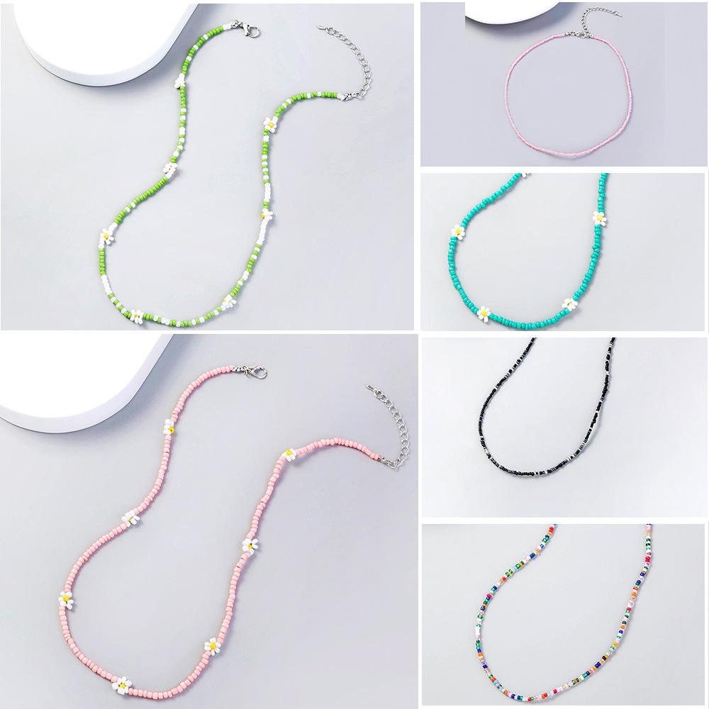 Charming Pearl & Colorful Seed Bead Flower Necklace - Handmade Women s Clavicle Chain