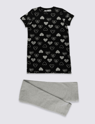 Комплект "Разбитое сердце" с технологией StayNEW™ для девочки 3-14 лет: платье из вискозы с принтом и леггинсы