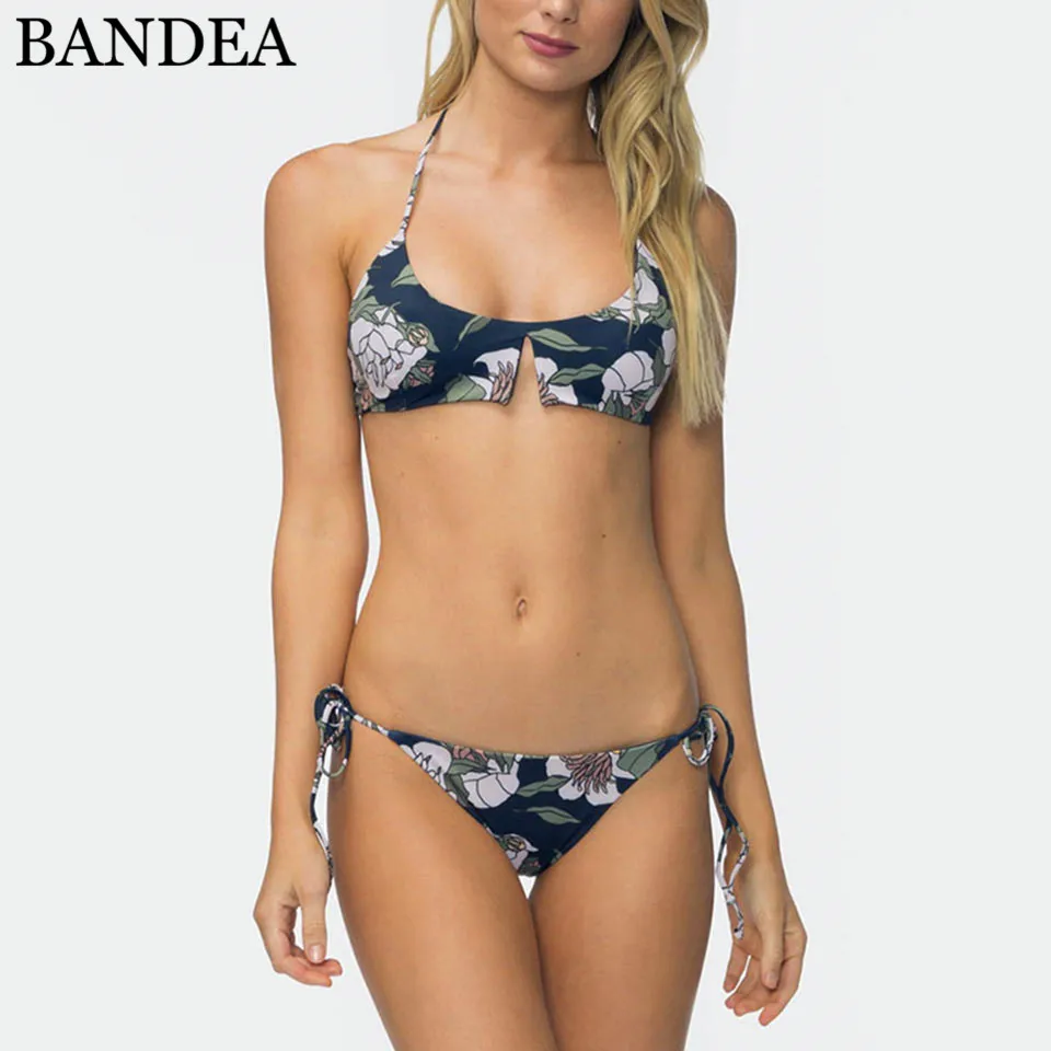 Комплект бикини женский, с цветочным принтом и лямкой на шее, 2019