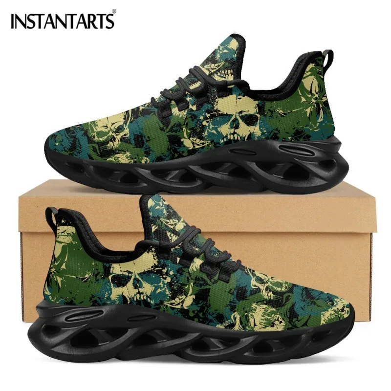 INSTANTARTS Camouflage Skull Printing Women Mesh Swing Sneakers Lightweight Platform Shoes Breathable Soft Running Zapatillas