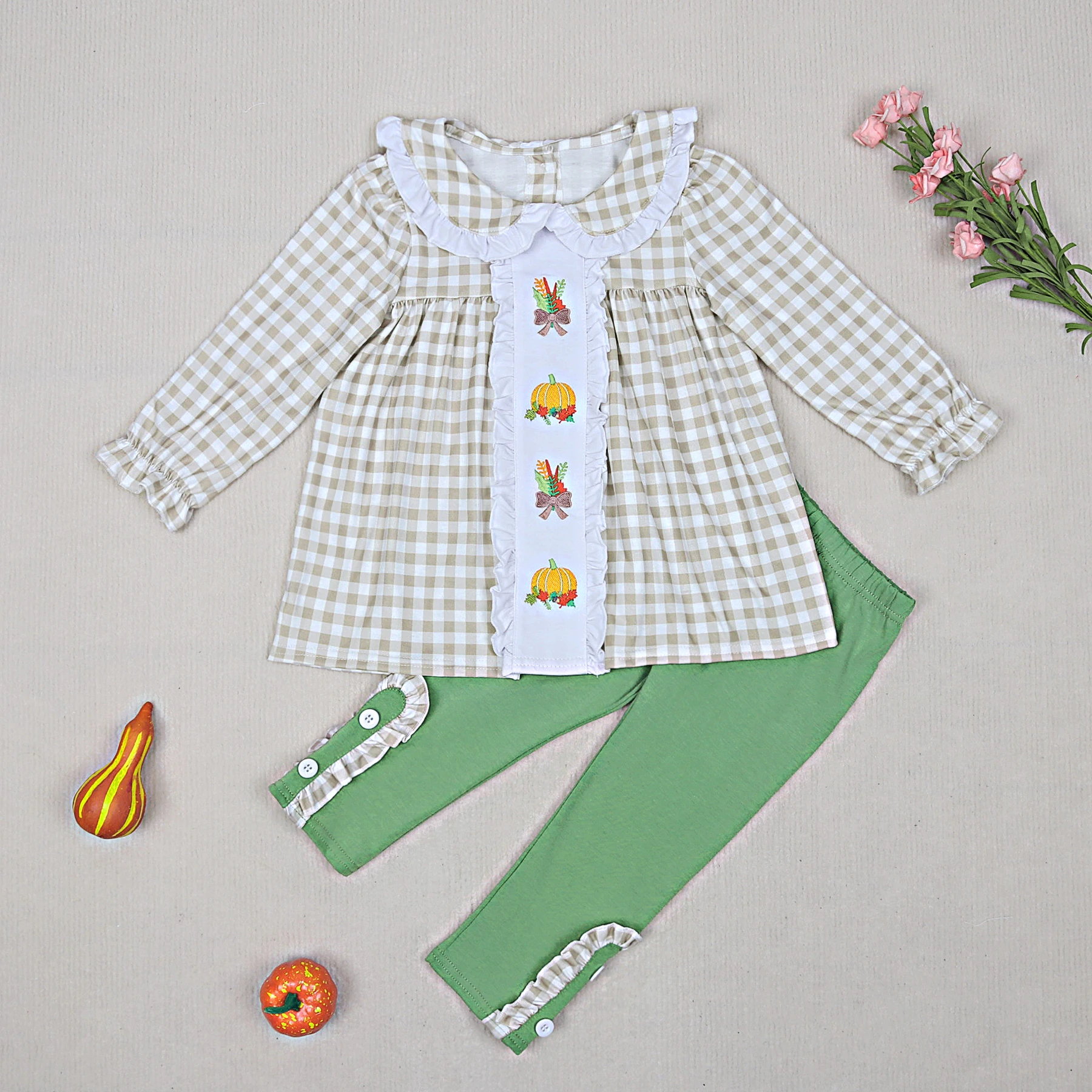 Комплект детской одежды с рисунком и длинными зелеными брюками, 2 предмета