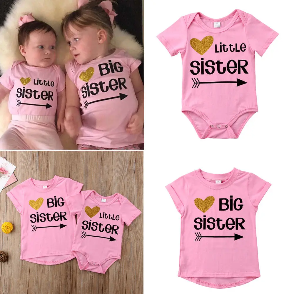 Комплект для всей семьи, хлопковая одежда, футболка для старшей сестры, боди для младшей сестры, наряд, Повседневный пуловер, топы, летняя од...