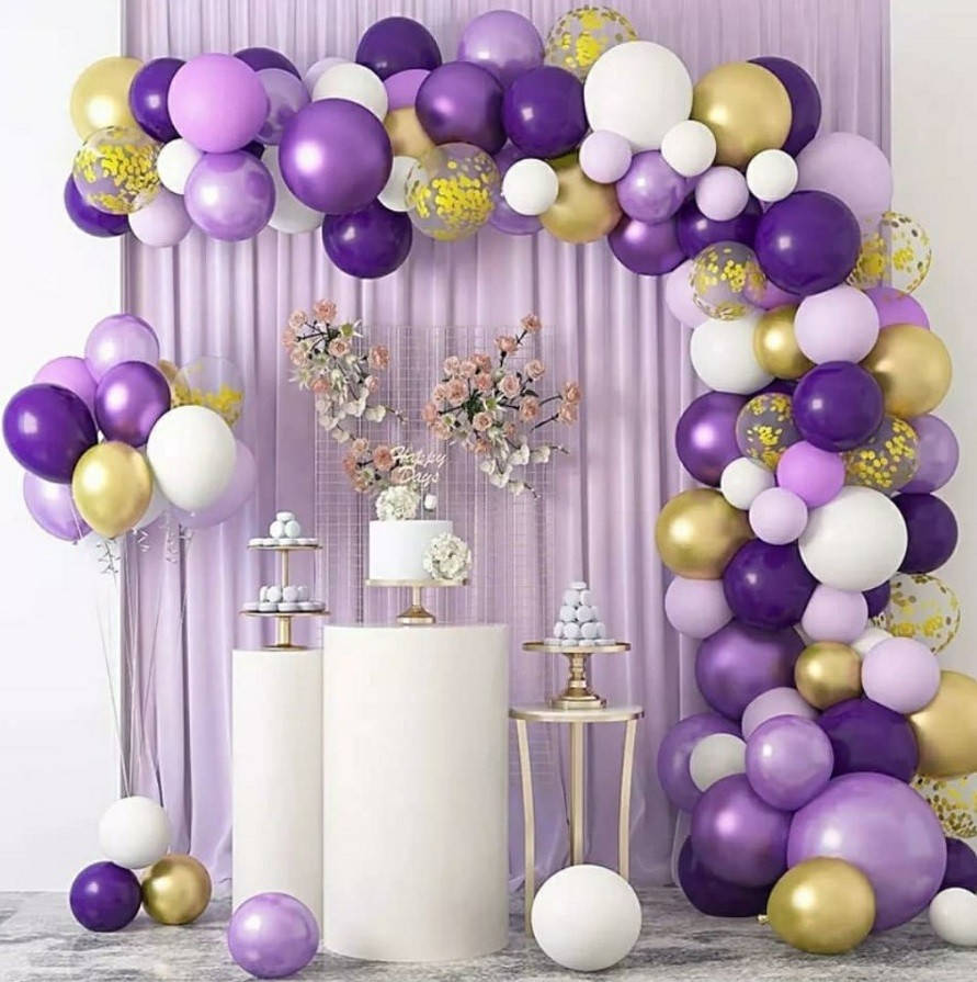 Шары латексные 25 см - 40 шт (фиолетовые пастель 10 шт, лиловые пастель 10 шт, металлик фиолетовый 10 шт, белые пастель 10 шт)