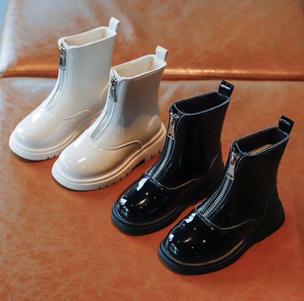 boots girls leather children shoes winter kids mid-calf snow solid color anti-slip boys, Black;grey