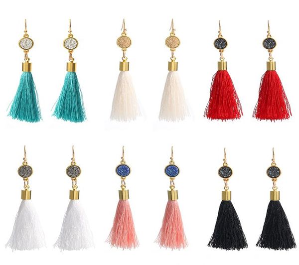 boho fashion colorful statement tassel dangle earrings for women resin druzy stone pendant gold plated hook long dangle earrings j8689673, Silver
