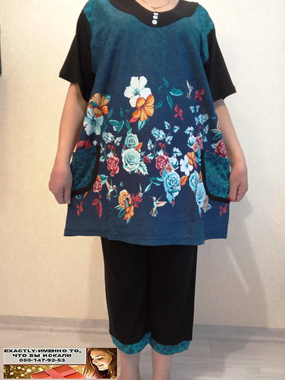 Комплект женский летний Дача бирюза 56 размер туника и бриджи, Бирюзовый
