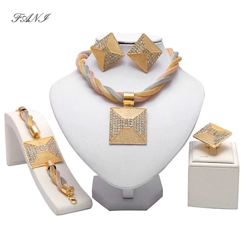 Комплект женских ювелирных изделий Fani, марокканский арабский свадебный комплект из колье, серёг, браслета, кольца, покрытого 18-каратным золотом, дубай