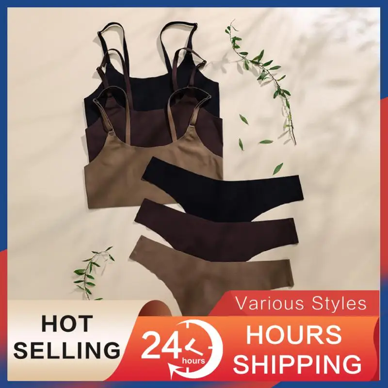 Комплект женского Бесшовного нижнего белья, однотонные пикантные трусики-стринги с заниженной талией, Бралетт без стальных колец, удобное ...