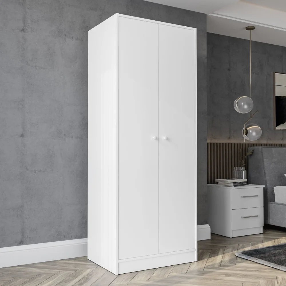 71 in. 2 Door Bedroom Armoire with Hanging Rod, White Wardrobes, Bedroom Cabinet, White Wood