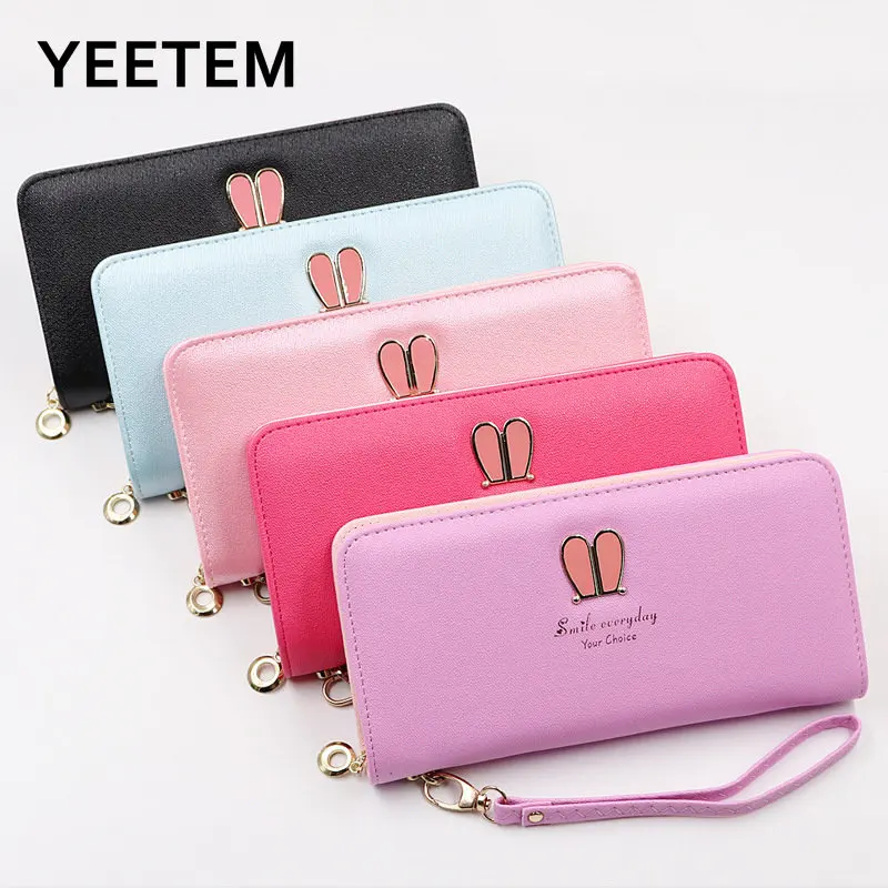 Новый женский кошелек однотонный модный длинный кошелек на молнии с кроличьими ушками популярный японский кошелек для студентов точечный оптовая продажа