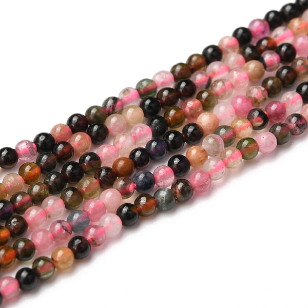 PandaHall Natural Tourmaline Round Beads Strands, 2mm, Hole: 0.5mm, about 209pcs/strand, 15.35 inch(39cm) Tourmaline Round