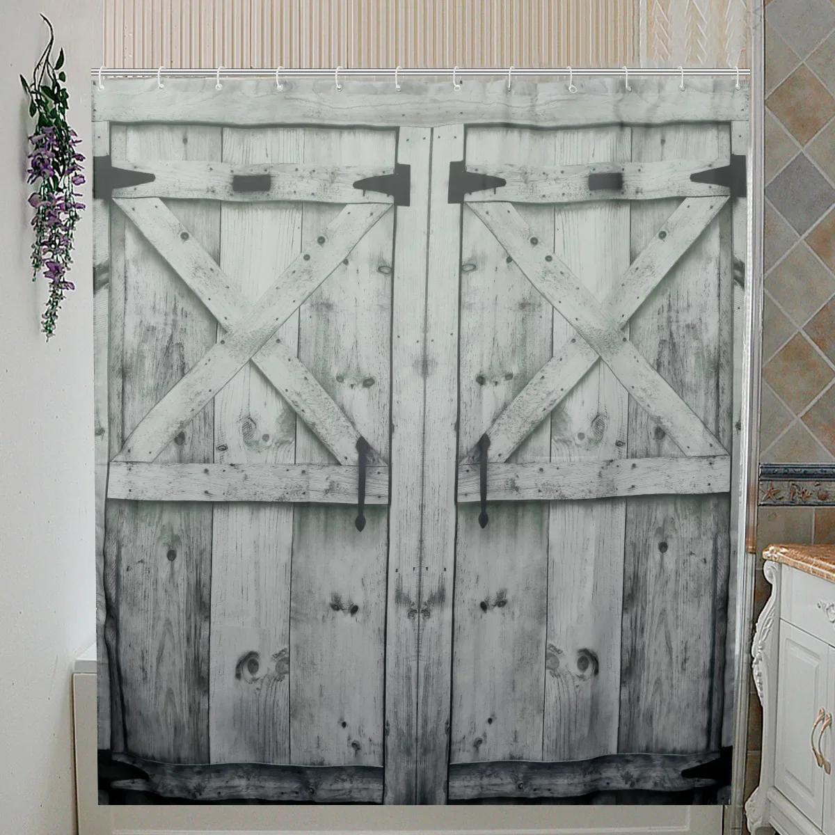 Комплект занавесок для душа, водонепроницаемая полиэстеровая занавеска для ванной комнаты 71x71 дюйм, быстросохнущая занавеска для душа, деревенская деревянная дверь для душа