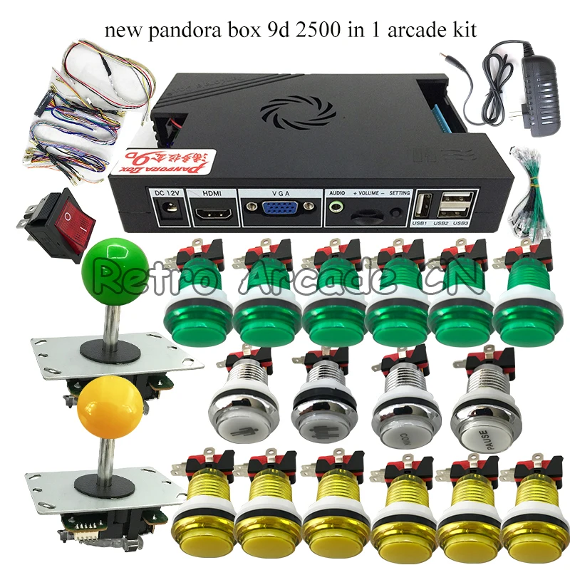 Комплект игровой консоли Pandora 9d «сделай сам» со светодиодный Ной кнопкой + 5-контактный джойстик + 2500 в 1 с 10 3d играми + адаптер + кабели + перекл...